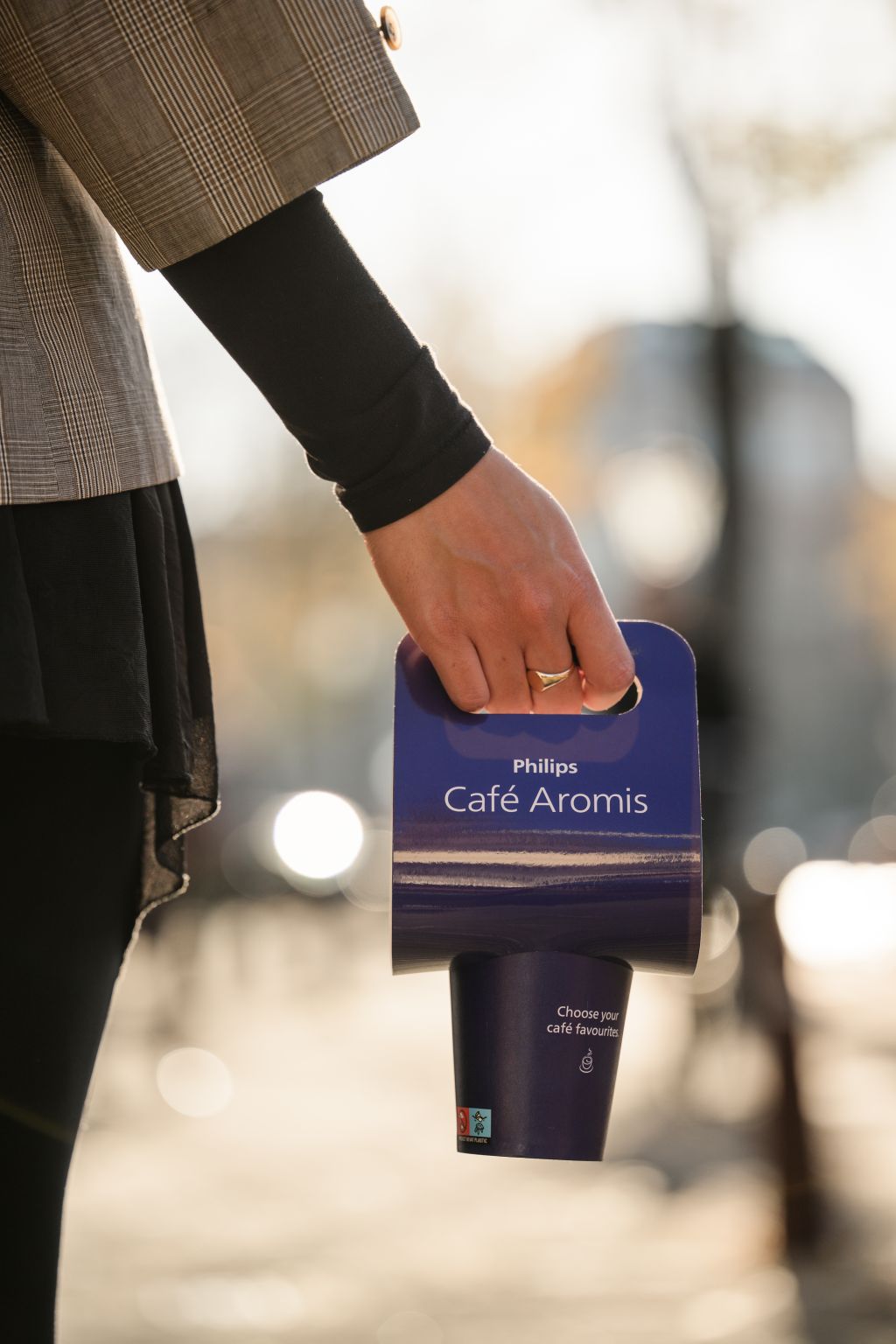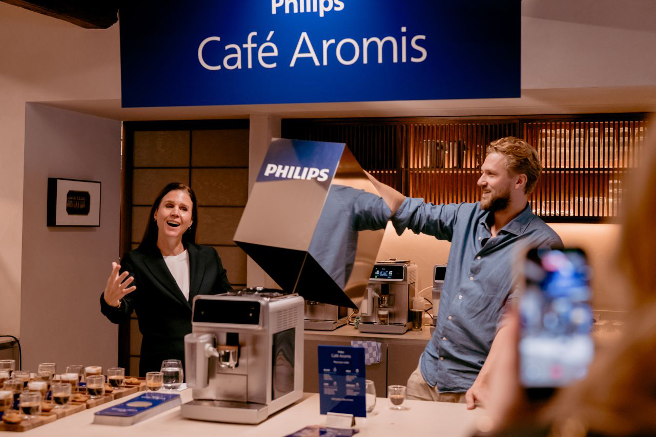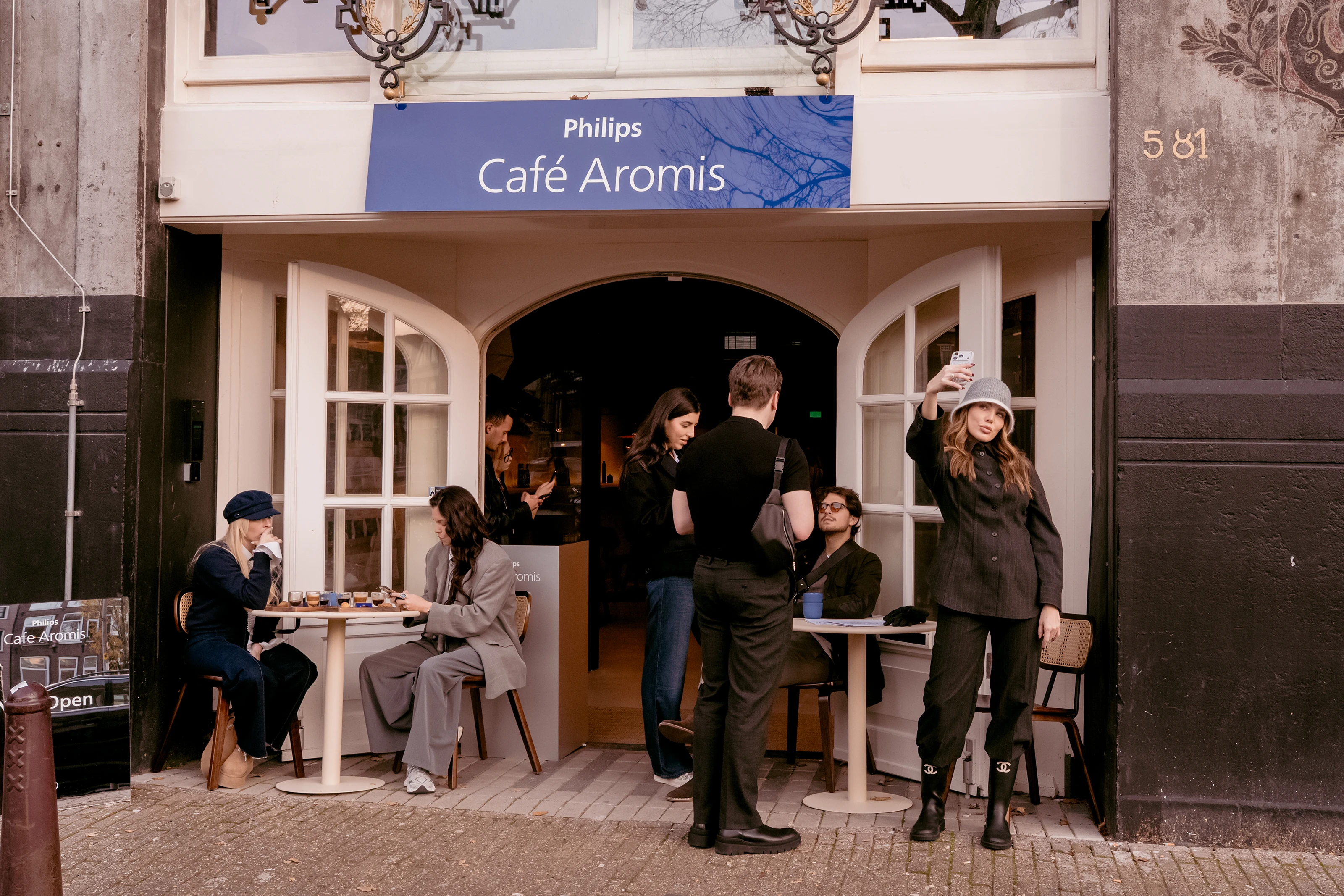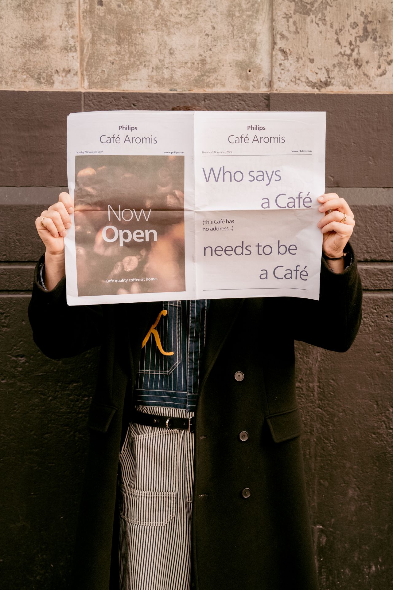 Guests stepped into an event space transformed into a living, breathing café - complete with a twist: every coffee was crafted by the Café Aromis machine. Tasting trays showcased a selection from the machine’s 50+ coffee varieties, while branded touchpoints, from newspapers and menus to signage and barista uniforms, immersed visitors in the world of Aromis. A live DJ added an energetic, coffee-rave ambience throughout, creating a full-sensory celebration of coffee, innovation, and the joy of discovering your perfect cup.